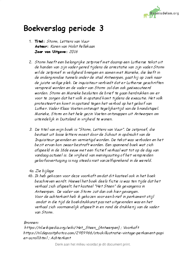 Storm, Letters van vuur Boekverslag 2VWO