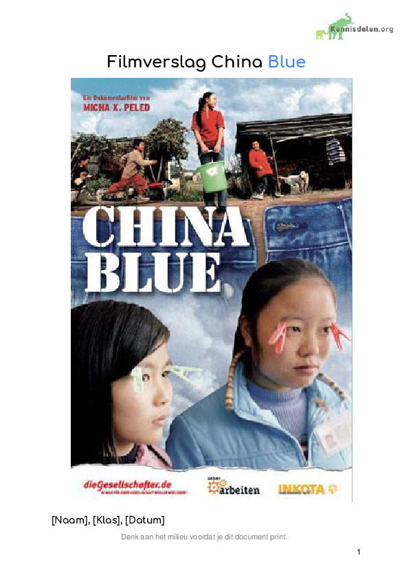 Verslag Aardrijkskunde China Blue (film)