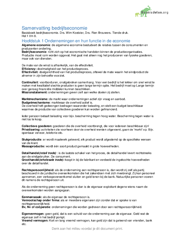 Samenvatting Basisboek Bedrijfseconomie Hst 1 t/m 8, Geschreven door: Wim Koetzier en Rien BrouwersWim Koetzier en Rien Brouwers00€2,79 Incl. BTW