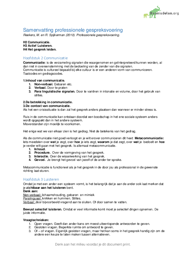 Samenvatting Professionele gespreksvoering Hst 2,3,4Martin Reekers & Rupers Spijkerman00€0,99 Incl. BTW