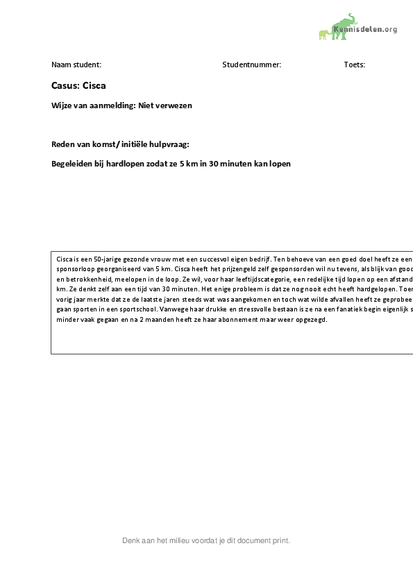 Uitwerking Praktijktoets, Beweegzorg in de context van gezondheid (Blok A)
