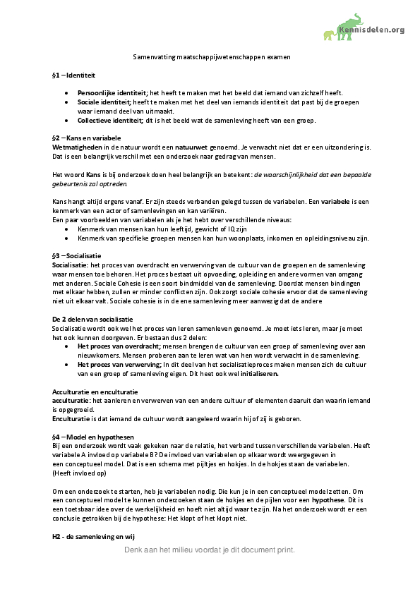 Samenvatting examenstof hoofdstuk 1 t/m 14 havo maatschappijwetenschappen seneca