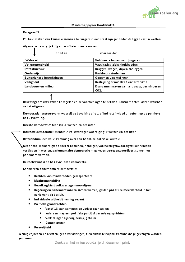 Uitgebreide Samenvatting Maatschappijleer heel Hoofdstuk 3, wat is democratie