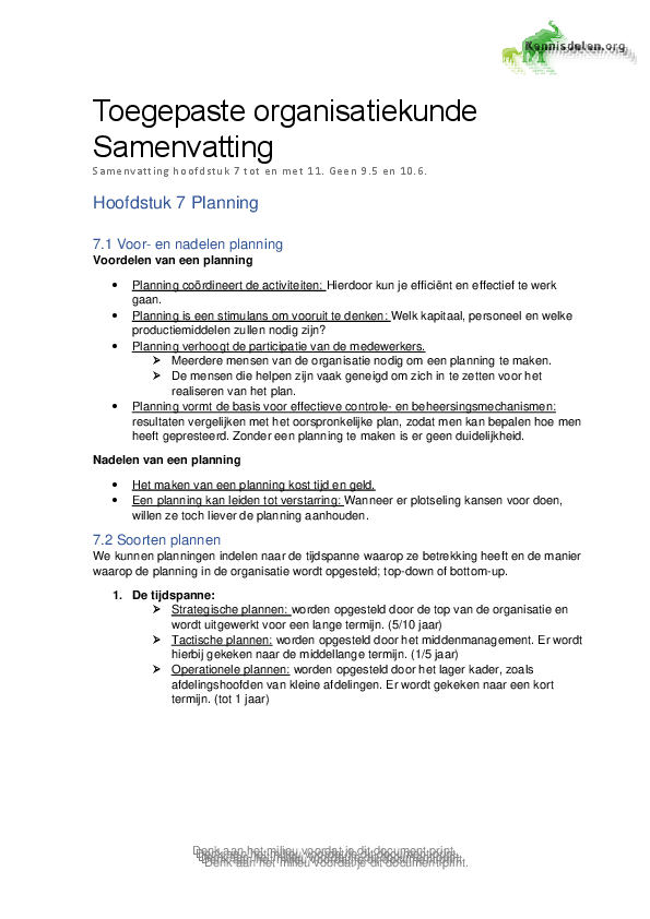 Toegepaste Organisatiekunde Samenvatting H7 tot en met H11