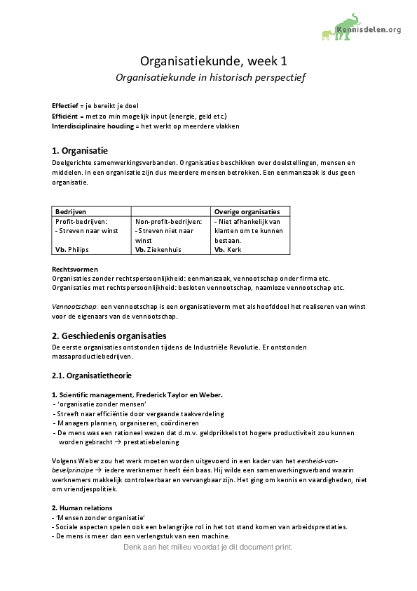 Inleiding organisatiekunde, hfd. 1 t/m 8 samengevat, 7 op tentamen
