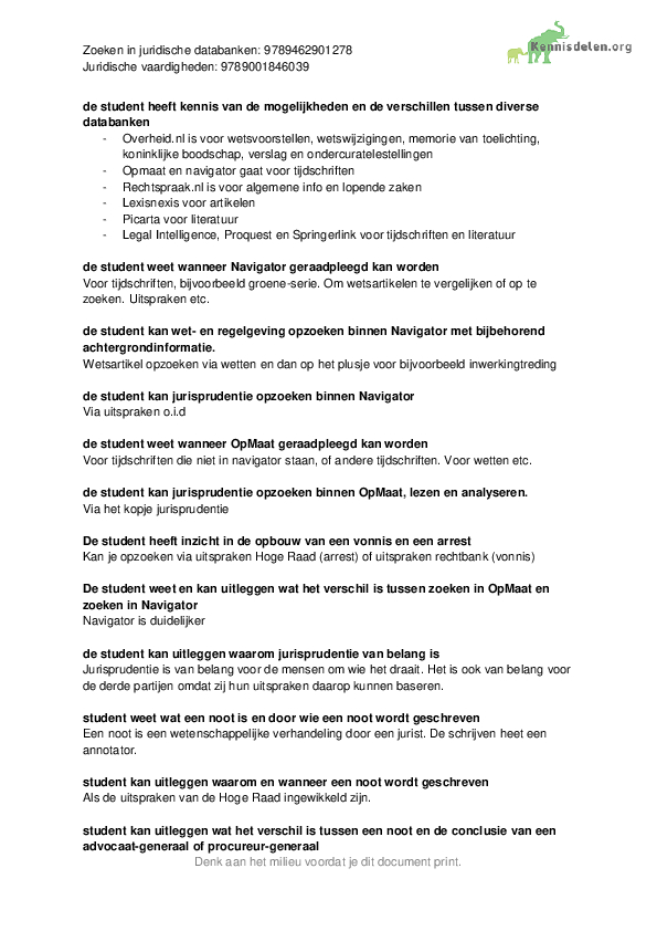 Leerdoelen juridische vaardigheden (databanken) → 9 mee gehaald