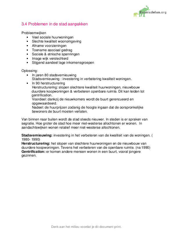 – samenvatting van het hoofdstuk stedelijke gebieden