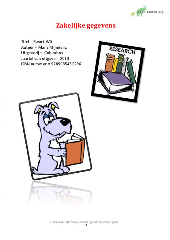 Het is een verslag van het leesboek, zwart-wit. Verdere informatie kun je vinden in het verslag