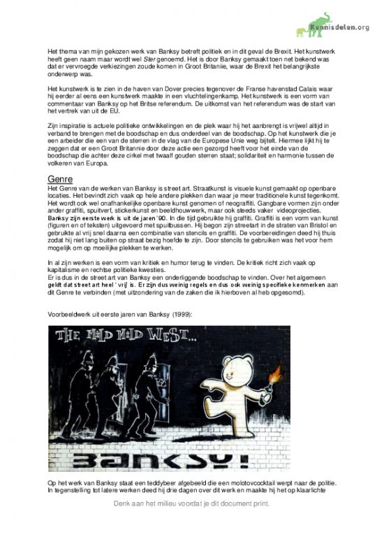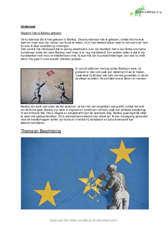 CKV onderzoeksopdracht VWO 4 / 5 Schilder, Kunstenaar Banksy met de volgende onderdelen: Onderzoek: keuze, thema, beschrijving, overtuiging. Beschouwen: invalshoek, vergelijking. Bronnenlijst.
