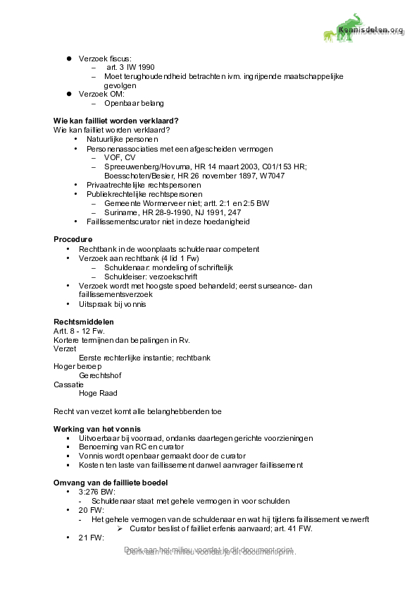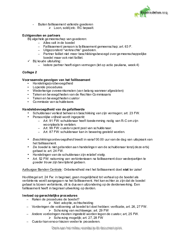 FAILLISSEMENTSRECHT Compleet alle colleges en casus