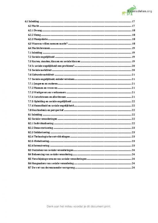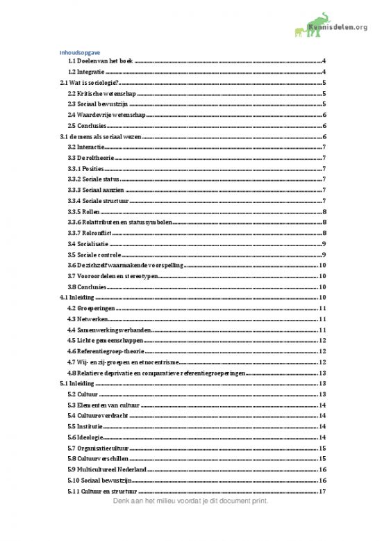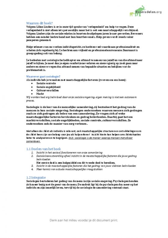 Beste studenten, Ik heb dit vak met een 8,7 afgerond. Ik heb het hele boek Praktijkboek sociologie (Hendrix, 2014) samengevat en vervolgens uit mijn hoofd geleerd. Daarnaast heb ik in de samenvatting alle belangrijke onderwerpen uit de hoorcolleges verwerkt, waardoor er in deze samenvatting toch… [more]