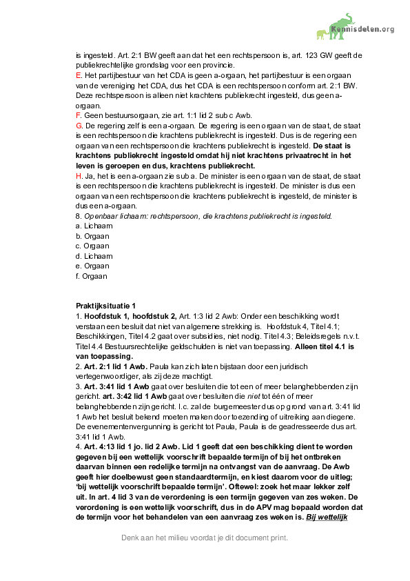 INLEIDING BESTUURSRECHT Compleet alle colleges casus