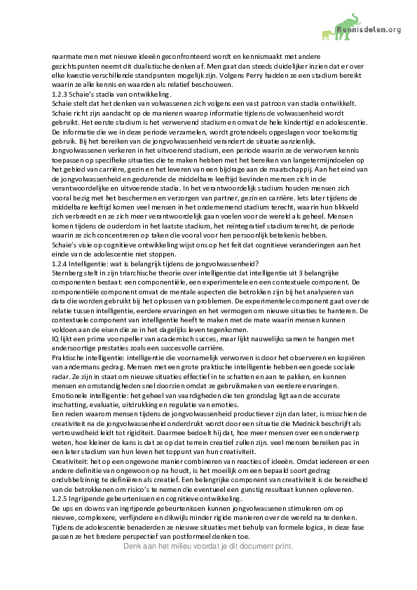 Ontwikkelingspsychologie II. Levensloop vanaf de jongvolwassenheid.