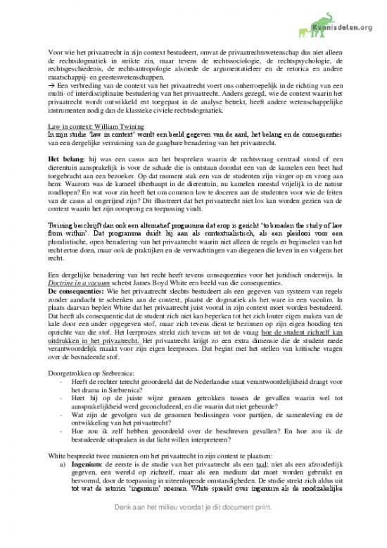 Complete (H1 t/m 9) en uitgebreide samenvatting van het boek Privaatrecht in context (M.A. Loth). (Mastervak: Verdiepend privaatrecht)