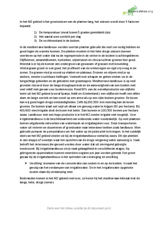 Samenvatting Aardrijkskunde Middellandse-Zeegebied Havo