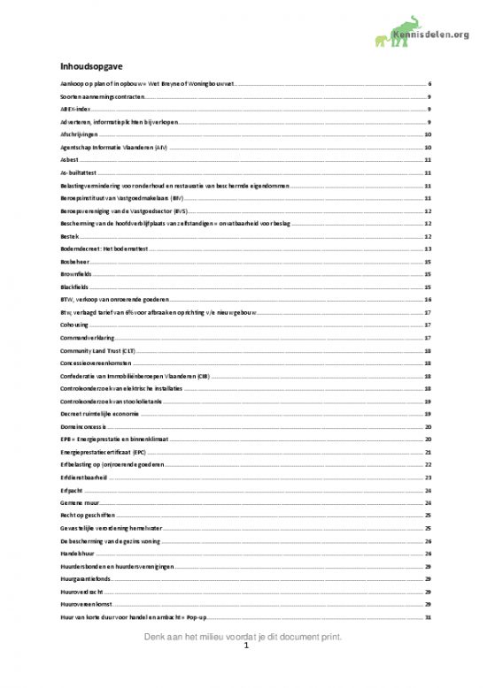 Dit is een samenvatting van het boek ‘Vastgoed in Pocket’ met bijkomende examentips voor het behalen van het BIV examen. Met deze samenvatting ben ik zonder problemen geslaagd op mijn theoretisch en mondeling examen.