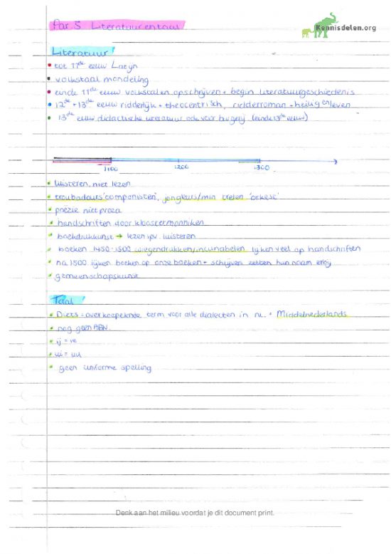 Samenvatting Dautzenberg Nederlands literatuurgeschiedenis par. 1-9, 17-26, 19-32 en 34-72 vwo