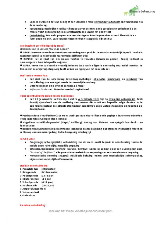 Samenvatting levenslooppsychologie (Tieleman, 2015)