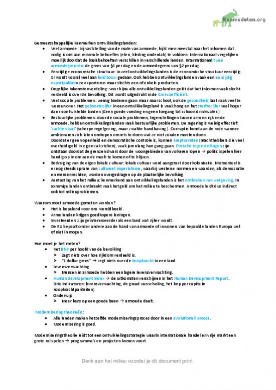 Samenvatting maatschappijwetenschappen ontwikkelingssamenwerking