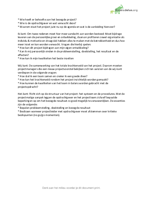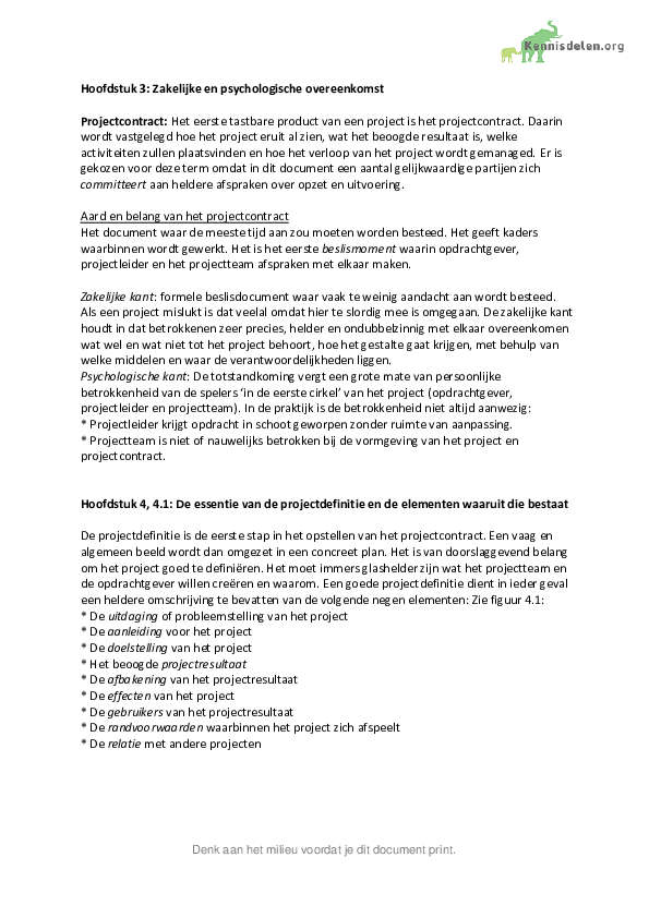 Samenvatting Projectmanagement: Projectmatig creëren 2.0