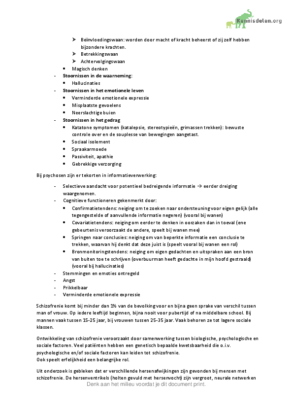 Samenvatting schizofrenie en andere psychotische stoornissen uit boek Psychiatrie