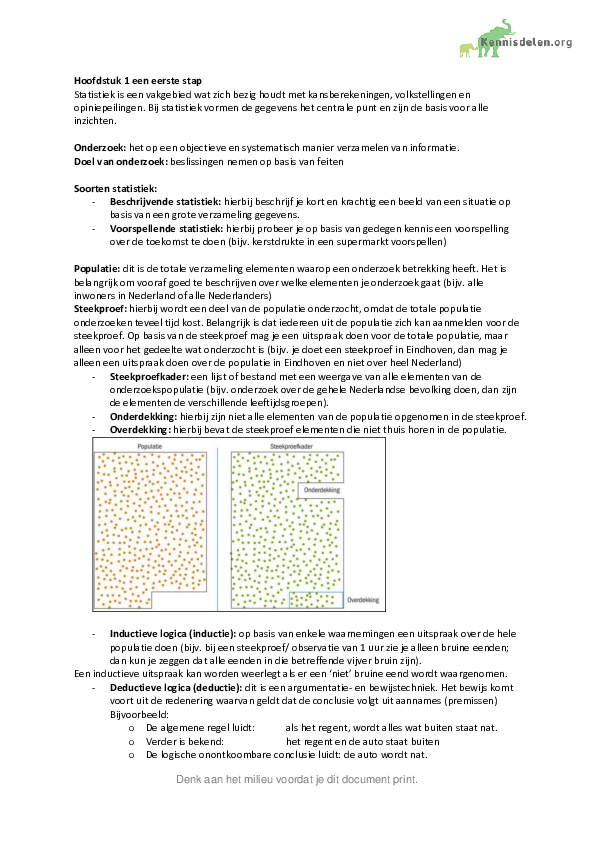 Samenvatting statistiek in 20 stappen blok 6 Bedrijfskunde MER