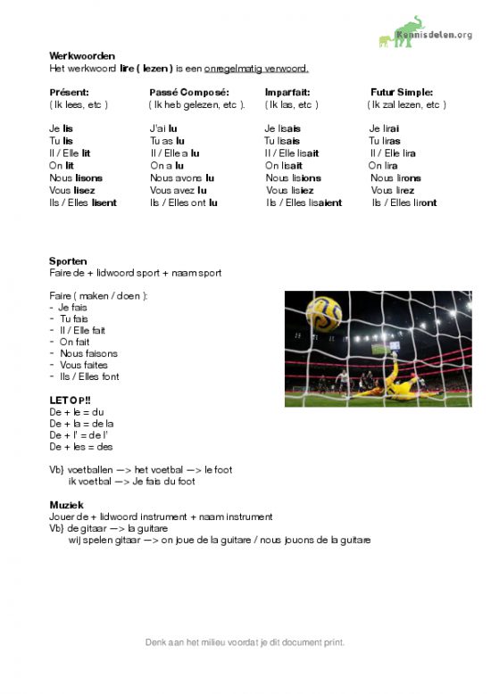 Samenvatting Frans hoofdstuk 5 ( boek: Grandes Lignes Livre D’exercices B ) + aantekeningen.