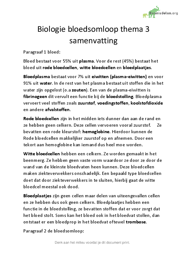 Biologie samenvatting bloedsomloop havo 3