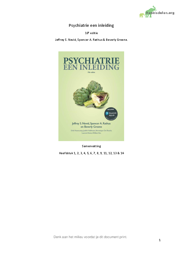 Samenvatting Psychopathologie Psychiatrie een inleiding 10e editie